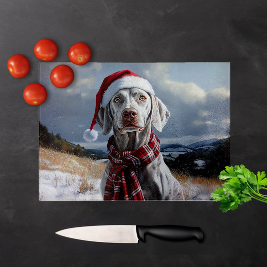 Christmas Weimarana Glass Chopping Board
