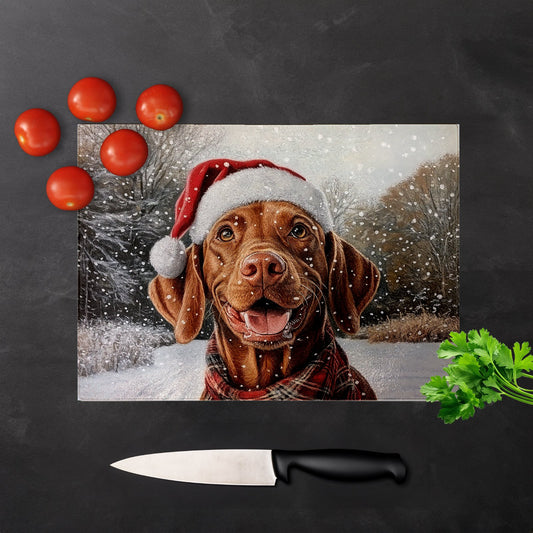 Christmas Vizsla Glass Chopping Board