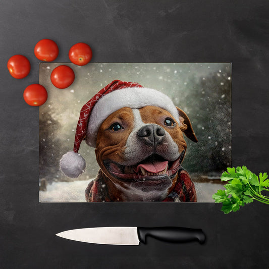 Christmas Staffordshire Bull Terrier Glass Chopping Board