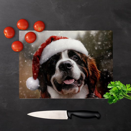 Christmas St Bernard Glass Chopping Board