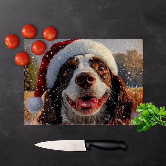 Christmas Springer Spaniel Glass Chopping Board