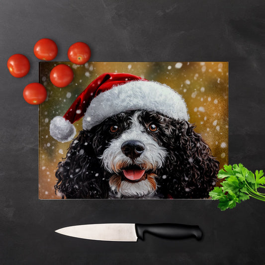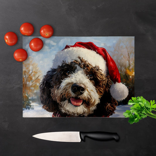 Christmas Spanish Water Dog Glass Chopping Board