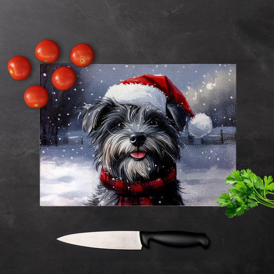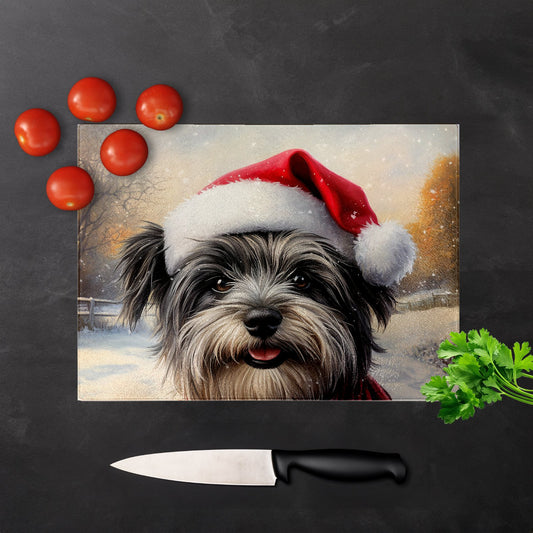 Christmas Skye Terrier Glass Chopping Board