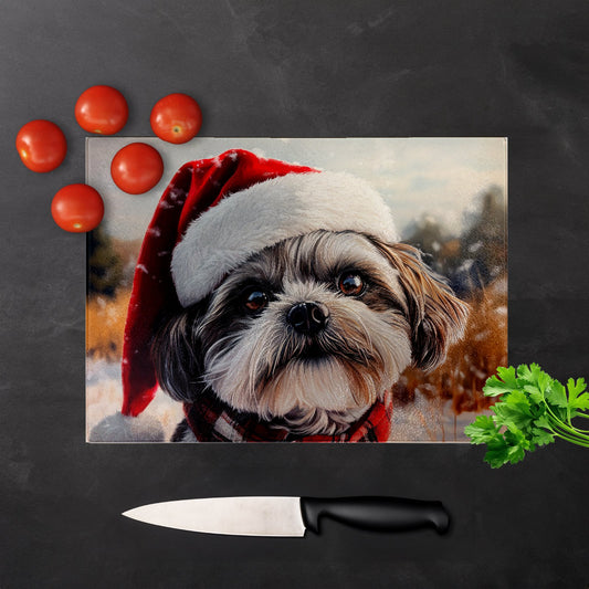 Christmas Shih Tzu Glass Chopping Board