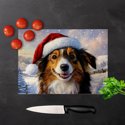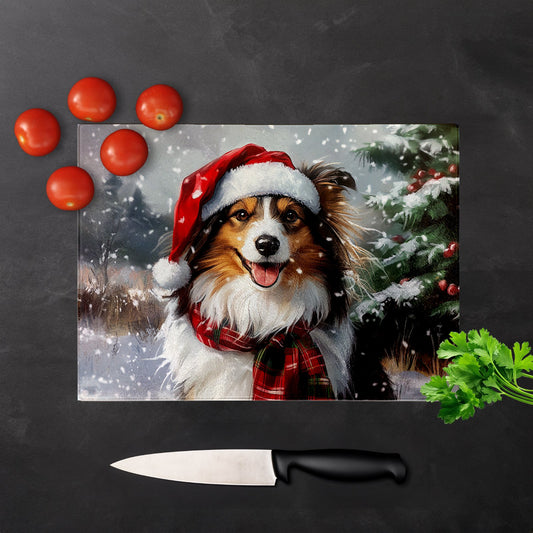 Christmas Shetland Sheepdog Glass Chopping Board