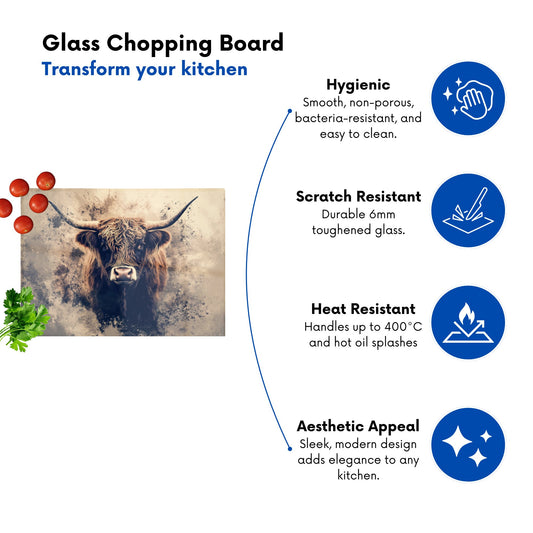 Moody Splashart Highland Cow Chopping Board