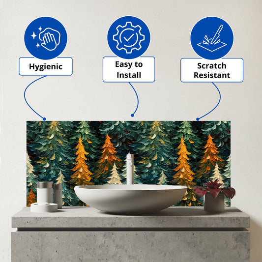 Impasto Style Christmas Trees Glass Bathroom Splashback