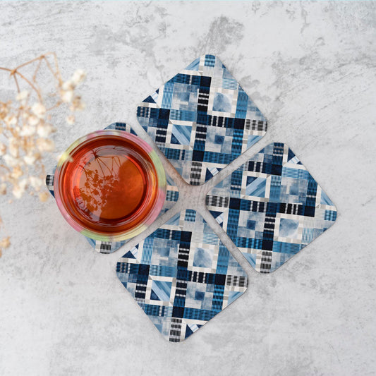 Brown And Blue Geometric Pattern Coasters