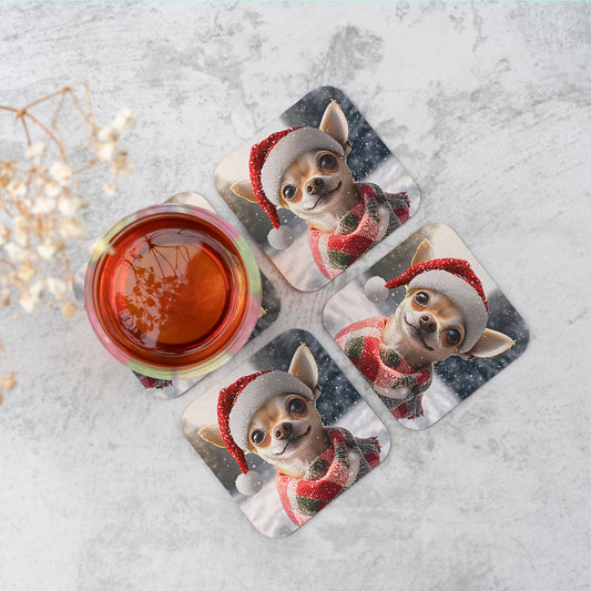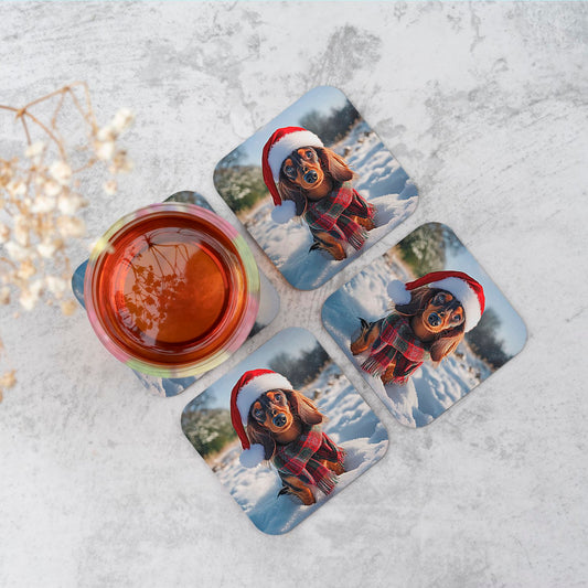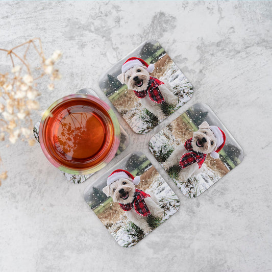 Snowy Christmas Dandie Dismount Terrier Coasters