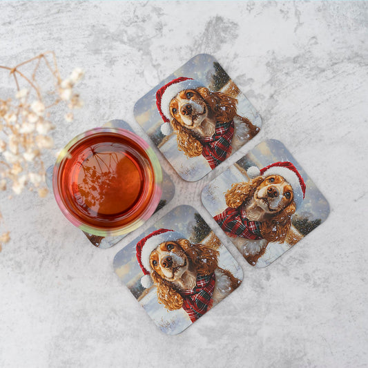 Snowy Christmas Cavalier King Charles Spaniel Coasters