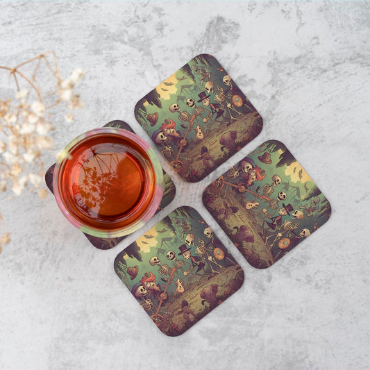 A Vibrant Illustration Of Witches And Pumpkin Coasters