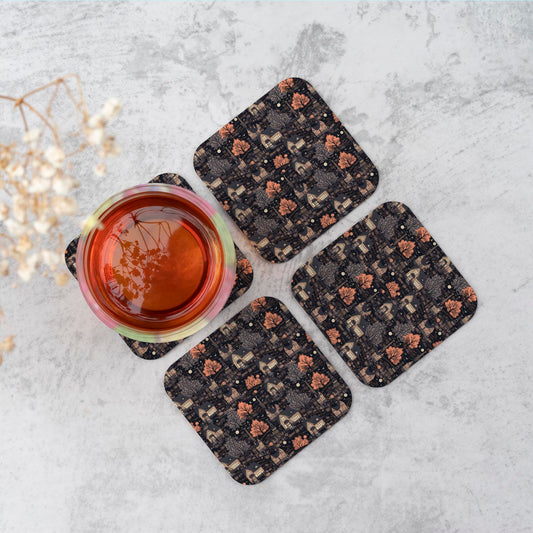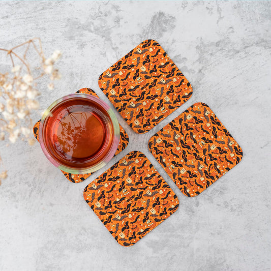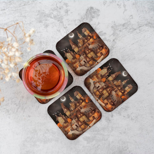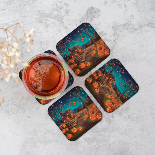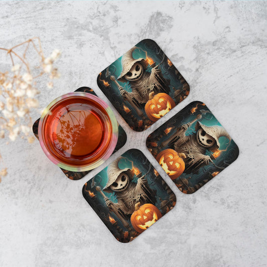 Spooy Pumpkin With Leaves And Small Candles Coasters