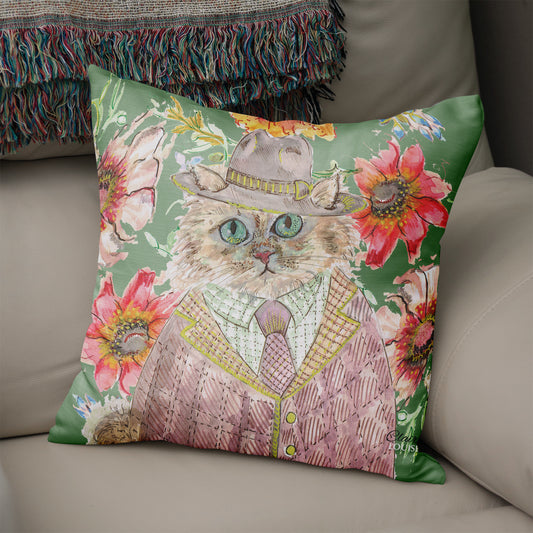 Cottage Floral Cat 45cm x 45cm Double Sided Cushion