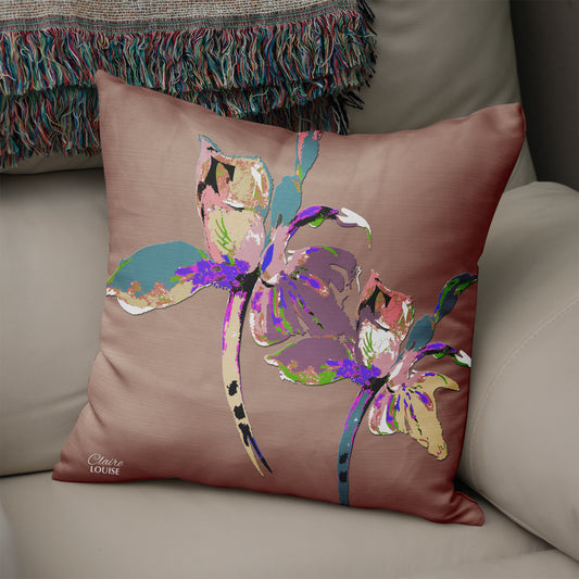 Flora Pop Mocha Mousse Iris 45cm x 45cm Double Sided Cushion