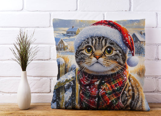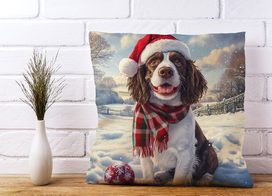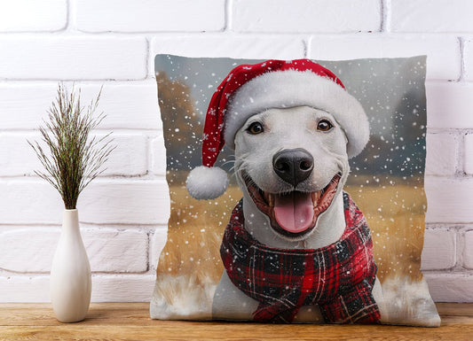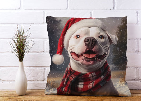 Snowy Christmas Staffy Bull Terrier Dog Cushion