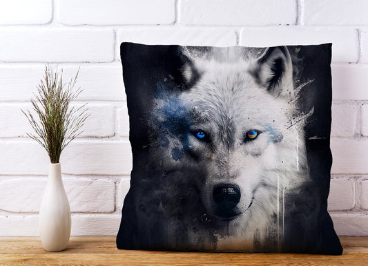 White Wolf Face Splashart Dark Backgrouns Cushions