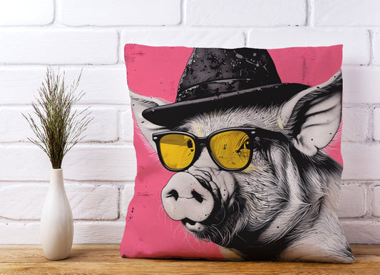 Pig In A Hat And Glasses Cushions