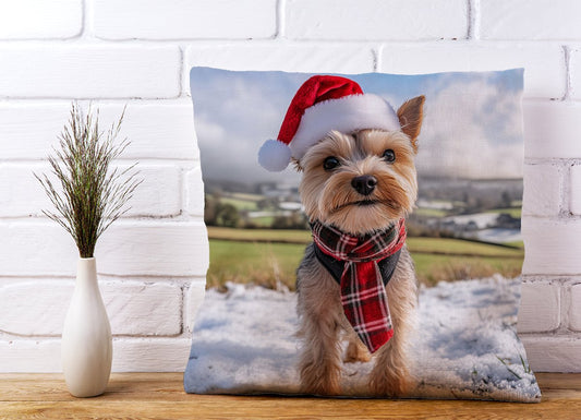 Snowy Christmas Yorkshire Terrier Cushion