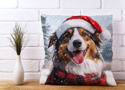 Snowy Christmas Shetland Sheepdog Cushion