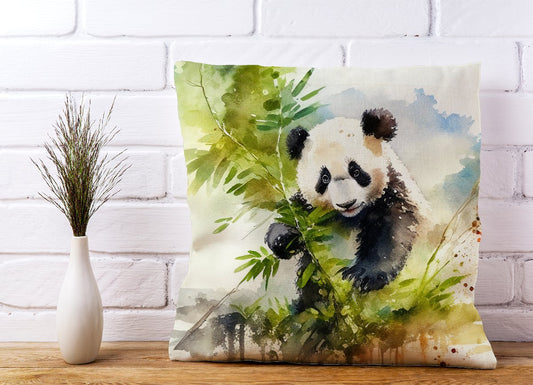 Panda Eating Bamboo Watercolour Cushions
