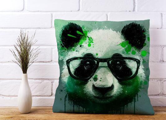 Panda With Glasses, Green Splashart Cushions