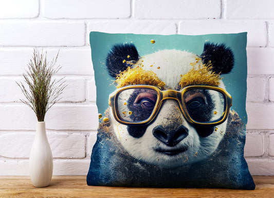Panda With Golden Glasses Splashart Cushions