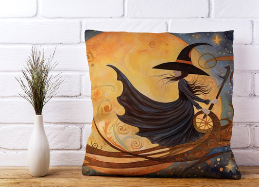 Whimsical Witch On A Broomstick Cushions