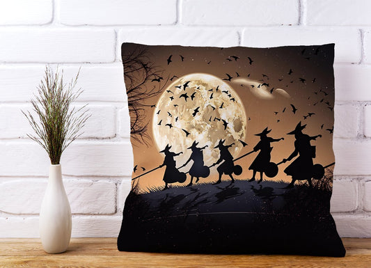 A Group Of Witches Riding Broomsticks Cushions