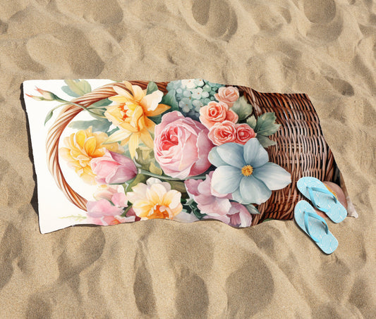 Watercolour Easter Basket Beach Towel