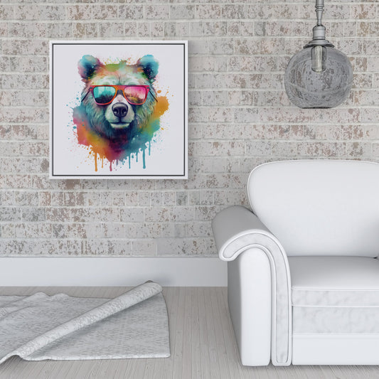 Splashart Bear In Glasses Framed Canvas