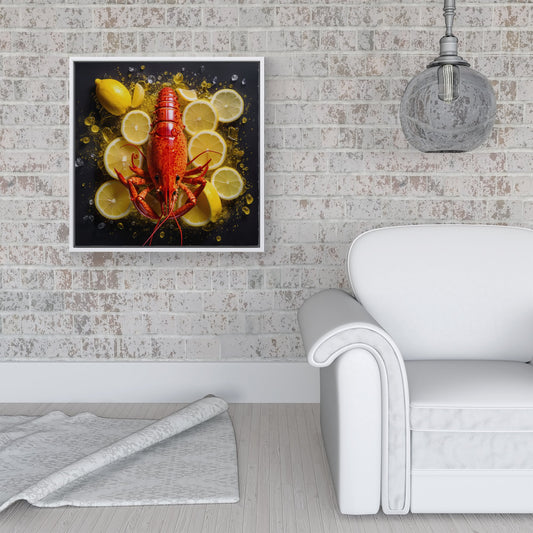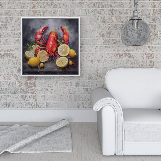 Lobster On Lemons Framed Canvas