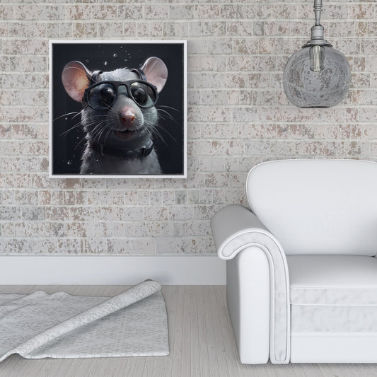 Splashart Rat In Glasses Framed Canvas