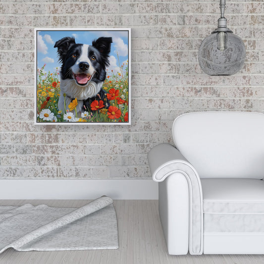 Border Collie Enjoying A Summer Meadow Framed Canvas