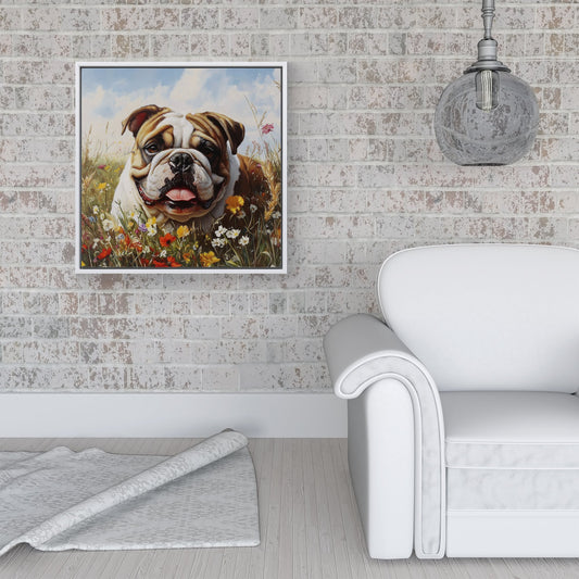 Bulldog Enjoying A Summer Meadow Framed Canvas