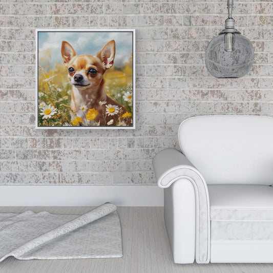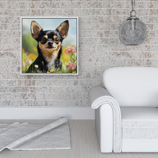 Chihuahua Enjoying A Summer Meadow Framed Canvas