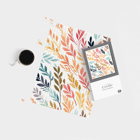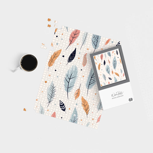 White Brown and Blue Geometric Pattern Jigsaw Puzzle