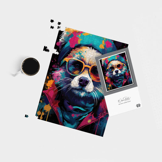 Multi Coloured Splashart Dog With Glasses Jigsaw Puzzle
