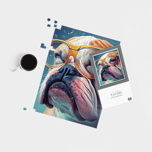 Bulldog With Glasses Splashart Jigsaw Puzzle