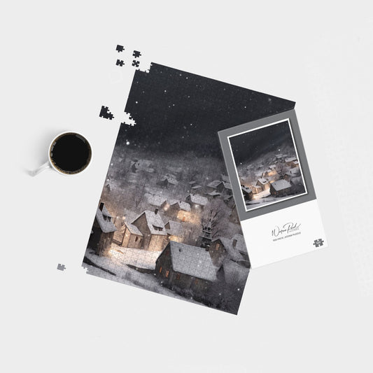 Snowfall Over A Quiet Village Jigsaw Puzzle