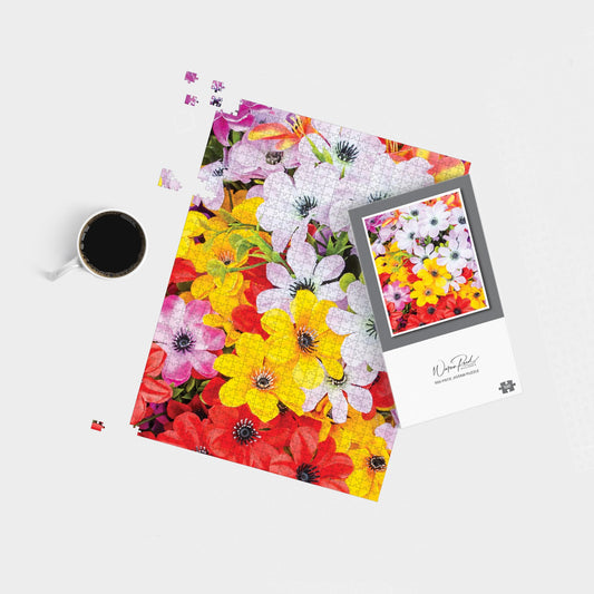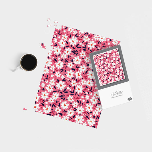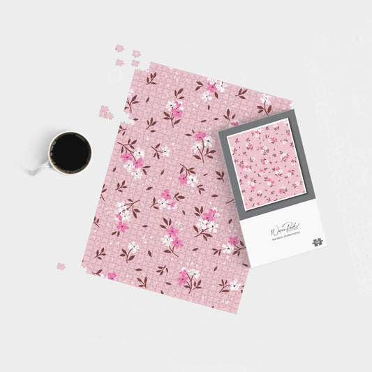 Pretty Pink Flower Pattern Jigsaw Puzzle