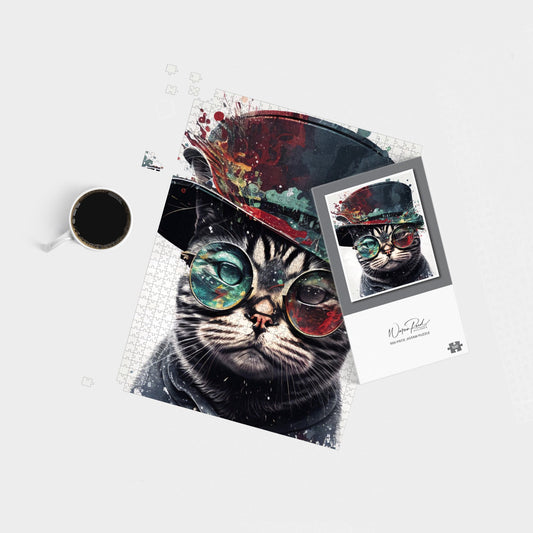 Splashart American Short Haired Cat In Hat Jigsaw Puzzle