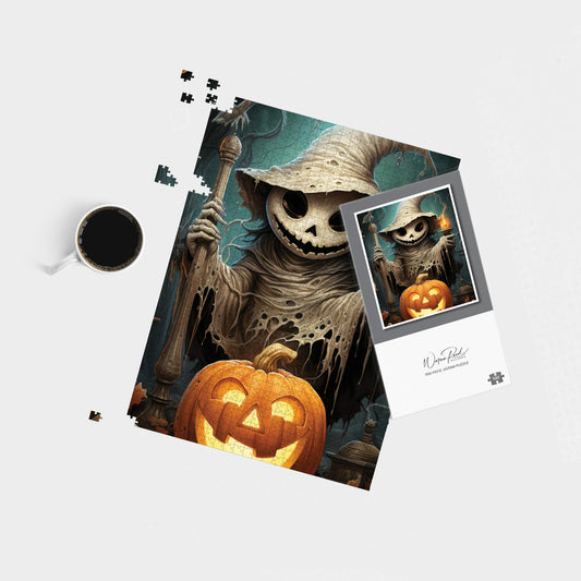 Creepy Ghost With Pumpkins Jigsaw Puzzle