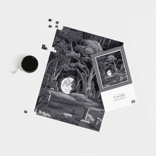 Eerie Moonlit Cemetery Jigsaw Puzzle