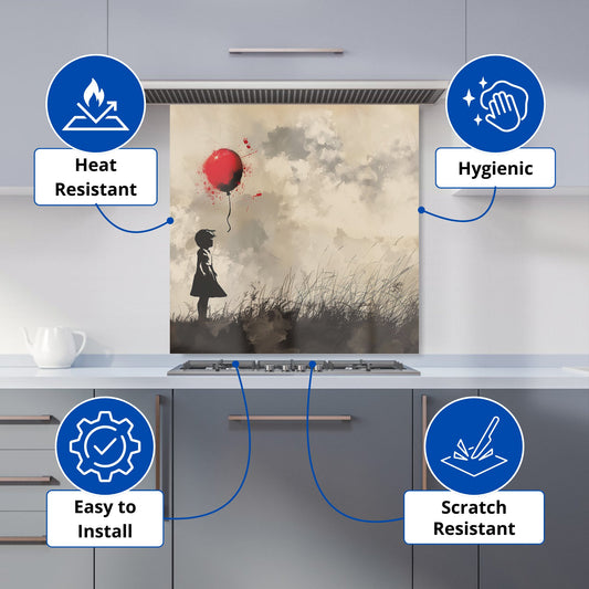Dreamy Banksy-Inspired Girl with Red Balloon Kitchen Splashback