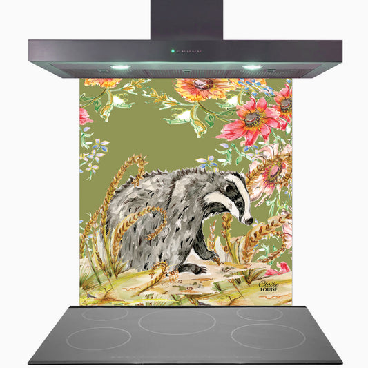 Monochrome Line Drawn Poppies Kitchen Splashback