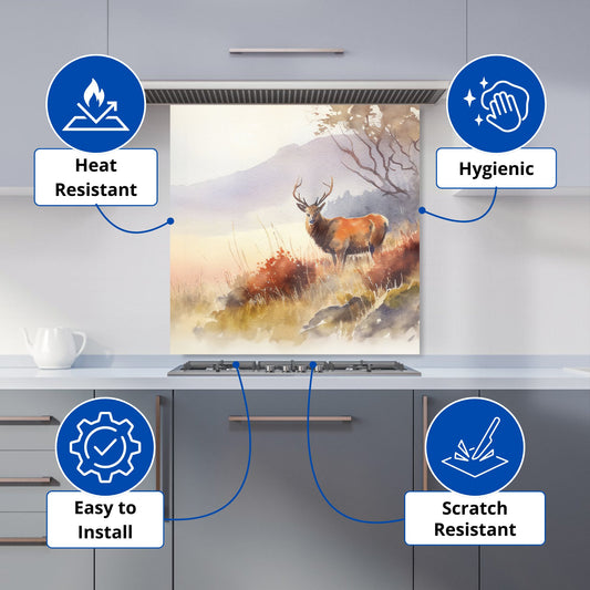 Stag Deer Water Colour Kitchen Splashback