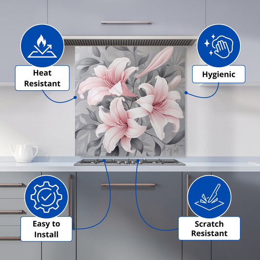Pink Lilies On Grey Kitchen Splashback