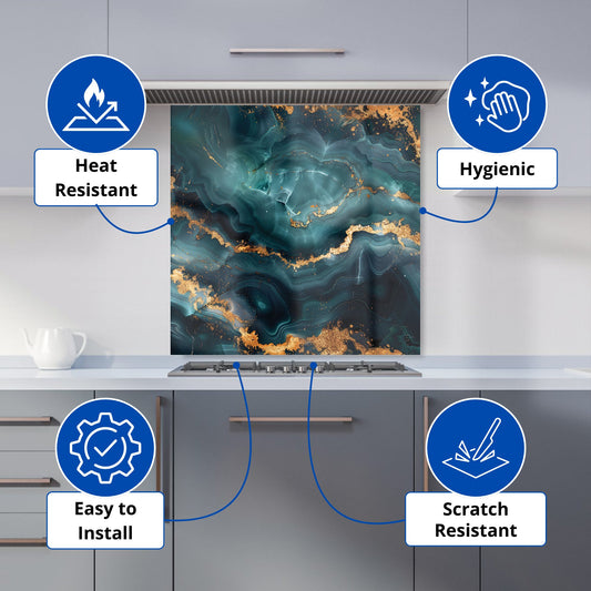 Azure And Gold Marble Effect Kitchen Splashback