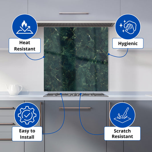 Deep Green Quartz Effect Kitchen Splashback
