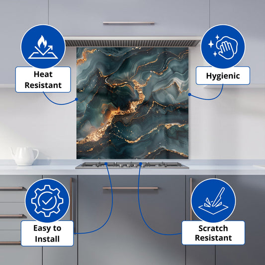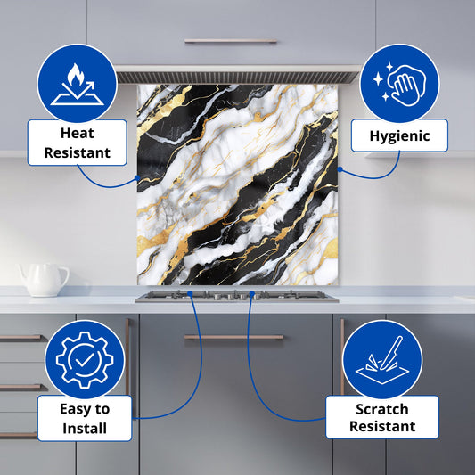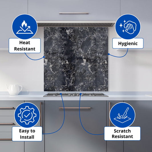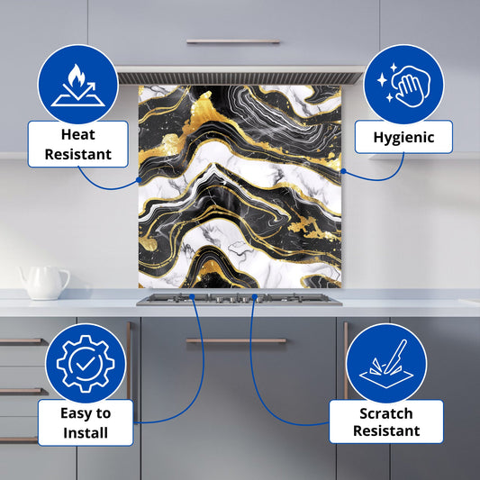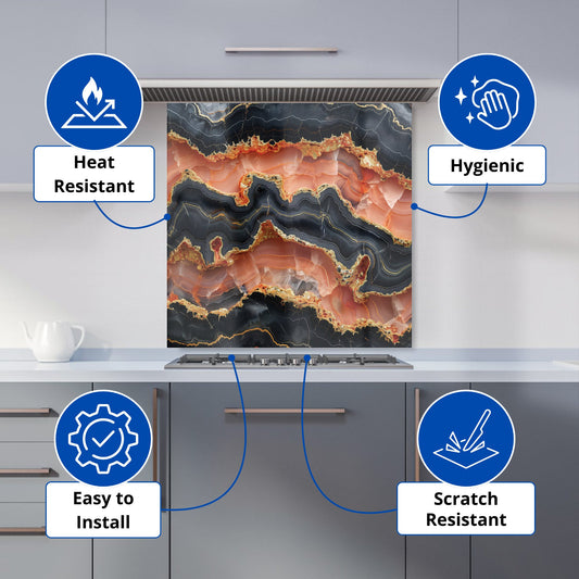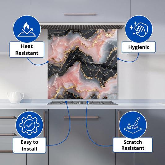 Black Pink And Gold Marble Effect Kitchen Splashback